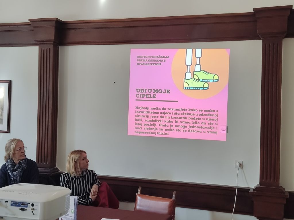 O tome su govorili učesnici panela: Nataša Stanić, savetnik za zapošljavanje osoba sa invaliditetom ispred Nacionalne službe za zapošljavanje Šabac, Uroš Ranđelović, Inicijativa “A 11”, Aca Perić, domaćin i član Udruženja paraplegičara mačvanskog okruga i autor priručnika “Bonton ponašanja prema osobama sa invaliditetom”, i Ivana Geratović, defektolog i oligofrenolog u Specijalnoj školi “Sveti Sava” iz Šapca.