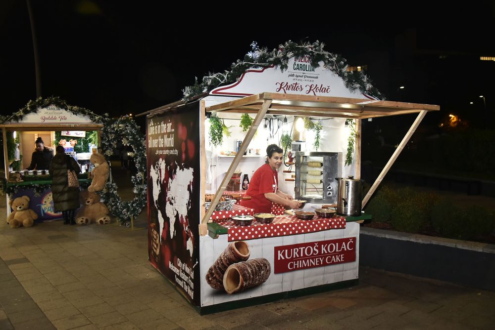 U praznično ukrašenim drvenim kućicama raspoređenim na platou ispred tržnog centra “Promenada” posetioci mogu da kupe raznorazne praznične rukotvorine, dekupaž predmete, nakit, slatke i slane gurmanluke, kao i kuvano vino i čaj koji su neizostavno deo zimskog festivala.